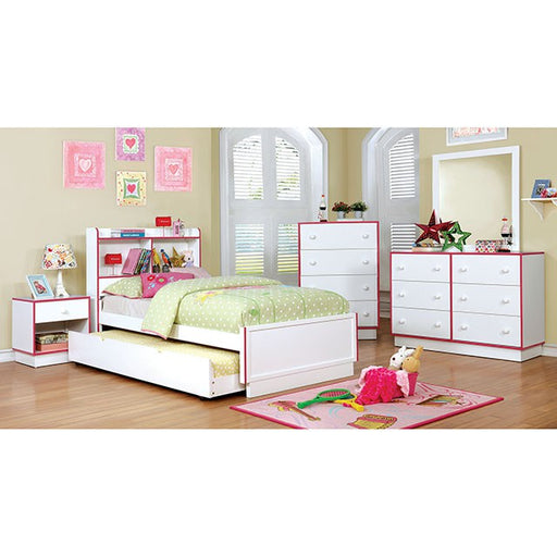 FurnitureOfAmericaThe ideal piece to increase organization in any youth bedroom with an exciting show of color! This two drawer transitional nightstand easily increa...