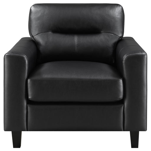 CoasterThis lounge chair brings focused simplicity to the living room with strong lines and soft detail. Wide track arms wrap around the seat’s plush cent...