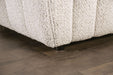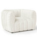 For the daring ones, the effective blend of retro vibes and contemporary elements make this piece a standout selection. Straight lines dominate the design here with chic vertical channel tufting that covers the single seat and back. Arms are stuffed and the cushioning wraps over the structure with the whole piece upholstered in smooth boucle fabric you can't find anywhere else. This living room collection aims to make comfort the most important thing.