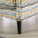 Simplicity is the name of the game with this chair. Pops of colorful and playful lines are found, giving this chair a friendly and approachable personality--the navy and gold accents popping against the neutral gray linen-like fabric.