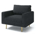 Clean lines and a boxy silhouette make this modern sofa set the true focus of your room. It also cleverly masks the most stylish part of this piece--the frame and back pillow is upholstered in exclusive chic boucle with metallic undertones, a trendy choice of fabric that will bring contemporary charm to any sophisticated urban space.