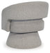 Indulge in the luxurious comfort and effortless style of this swivel accent chair. Its fine boucle upholstery and open barrel back create a chic and inviting look. And the 360-degree swivel base adds function to all that fabulous form.