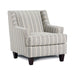 It's a classic modern no-nonsense chair with track arms that flare out slightly. A favorite of the modest-yet-business savvy sense, it's compact size is solidly supported by large cubed and tapered wood feet. The body is fully padded and upholstered with intricately-stitched patterns that would dominate if not for the tastefully chosen muted tones. Welt-cord trim highlights contours of this slightly smaller-statured mainstay that successfully manages to be unique.