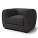 This compact living room ensemble is full of welcomed surprises. The tall arms and low back is an obvious homage to the tuxedo style, but the bulbous shape and smoother lines is a unique twist taking inspiration from the modern era. Underneath the seat cushions are high density foam, making firmer seats than one would expect for the shape that it is in. Finally, soft boucle fabric wraps around the whole piece highlighting a certain air of elegance and quiet class.