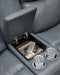 Details U5950415: Dual-sided recliner; middle seat remains stationary, One-touch power control with adjustable positions, Easy View™ adjustable headrest and zero-draw USB port, Zero-draw technology only consumes power when the USB receptacle is in use, Corner-blocked frame with metal reinforced seat, Attached cushions, High-quality foam cushions wrapped in poly fiber, 100% top grain leather covers inside areas such as the back, seat and arm cushions; skillfully matched faux leather covers the remaining areas, Corrected top grain leather with slight embossing, Due to its natural origin, real leather can show individual characteristics such as healed scars, growth marks, grain variation and shade variation, Natural variations make each hide unique and do not detract from the wearing qualities of leather, Power cord included; UL Listed, U5950418: One-touch power control with adjustable positions, Easy View™ adjustable headrest and zero-draw USB port, Zero-draw technology only consumes power when the USB receptacle is in use, Corner-blocked frame with metal reinforced seat, Attached cushions, High-quality foam cushions wrapped in poly fiber, 100% top grain leather covers inside areas such as the back, seat and arm cushions; skillfully matched faux leather covers the remaining areas, Corrected top grain leather with slight embossing, Due to its natural origin, real leather can show individual characteristics such as healed scars, growth marks, grain variation and shade variation, Natural variations make each hide unique and do not detract from the wearing qualities of leather, Center console with 2 cup holders and hidden storage, Power cord included; UL Listed, U5950413: One-touch power control with adjustable positions, Easy View™ adjustable headrest and zero-draw USB port, Zero-draw technology only consumes power when the USB receptacle is in use, Corner-blocked frame with metal reinforced seat, Attached cushions, High-quality foam cushions wrapped in poly fiber, 100% top grain leather covers inside areas such as the back, seat and arm cushions; skillfully matched faux leather covers the remaining areas, Corrected top grain leather with slight embossing, Due to its natural origin, real leather can show individual characteristics such as healed scars, growth marks, grain variation and shade variation, Natural variations make each hide unique and do not detract from the wearing qualities of leather, Power cord included; UL Listed,