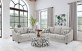 • Light gray upholstery complements clean, sleek silhouetting in a modern two-piece sofa set