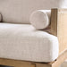 A perfect blend of retro and mid-century modern vibes, this sofa set is a welcome addition to any sophisticated home decor. Straight lines and blocky construction are kept in check by the loose back and bolster pillows with plush seat cushions. Natural elements such as ash wood trims and woven rattan panel help give this piece some organic flair. The beige fabric also provides much needed warmth to an otherwise sterile design. The result is a perfect balance of softness and rigidity that everyone can truly appreciate.
