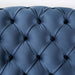 Posh and elegant, this loveseat is the perfect focal point for your living room. It's rich in traditional flair; the deep tufted backrest and arms gives off a majestic flair, while the nailhead trim radiates undeniable class. Meanwhile, the off-beat, deep indigo color allows this piece to be the center of attention in a boho chic setup, surrounded by an assortment of patterns and fantastic textures.