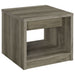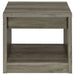 • Rustic end table with a stylish gray wood-look finish that enhances its natural charm