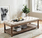 The perfect bench for a living room or an entryway where you want to make a quick stop. The worn wood look adds that touch of country charm, like a nice place to kick off your boots properly entering the house. The plank bottomshelf can hold shoes, sandals, and even decor to keep everything tidy.