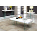 This end table pushes the boundaries of minimalistic design. A high gloss lacquer coated table top is held up by four tempered glass table legs. This is a truly one-of-a-kind set for the experimental individual or the modern inclined interior.