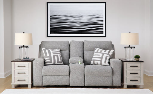 Signature Design by Ashley®Trend-right style, meet irresistible modern function. Your living room gets a cozy-cool upgrade with the TwinBrooke power reclining loveseat. Curl ...