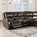 Easy reclining function gives this functional living group its most spectacular feature-- convenience and comfort to anyone that finds themselves seated on them. Lean back and sink into the plush cushions supported by no sag suspension and corner-blocked hardwood frame within. Enjoy the wall hugger design of the reclining mechanism requiring only a mere three inches off the wall for a fully-laid out position so you can recline to maximum comfort with no worries with a touch of a button. On top of that the whole set is upholstered in top grain leather