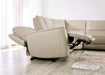 Suitable for any modern home, this beige sectional will liven up any living room it graces. It starts with the materials upholstered in top grain leather, the frame within is made of kiln-dried hardwood, corner blocked for maximum durability. High density foam and a no sag suspension go underneath each seat, with heavy duty reclining mechanisms controlled by a simple touch of a button. The L-shaped sectional offers plenty of seats with zero gravity position and extendable footrests for everyone to stretch out and relax. Designed to stay off the wall even with just three-inch space, its the kind of furniture that takes into account the intricacies of living in a more modest space.