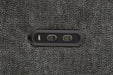 • Dark grey chenille upholstery features a soft texture with a refined woven appearance