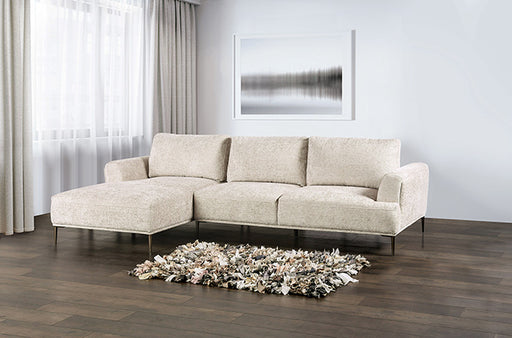 FurnitureOfAmericaSpecifications Dimensions 113"W X 67"D X 33"H (SEAT HT: 17.5", SEAT DP: 22") Feat1 Contemporary Feat2 Beige Feat3 Chenille, Metal, Solid Woo...