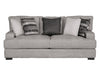 Add rich comfort to your living space with this handsome collection. Loose pillow backs and seat cushions are all trimmed with same-color welt that add a sense of refinement. The low arms and wide seating it offers creates an inviting and bold aesthetic. The monotone colors from the body fabric and the assorted patterns on the accent pillows work very will with contemporary spaces that go for the understated look.
