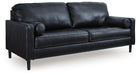 This sofa embodies timeless mid-century elegance with its linear design, sleek track arms and tapered legs. Genuine leather in the seating area adds a luxurious touch to the overall look. Experience endless style opportunities for today's living spaces.