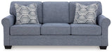 This sofa is defined by comfort, convenience and classic style. Soft to the touch and stain-resistant, the Next-Gen Nuvella™ fabric is easy to maintain. And you'll love the universal appeal of its denim-inspired hue. With roll arms adding a dash of traditional flair, the sofa is a simply chic approach to everyday relaxation.