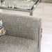 Simplicity is the name of the game with this living room ensemble. You'd appreciate the clean lines from the round wooden legs to the rounded armrests lined with welt trim. The back cushions are loose pillows that are easily removed for cleaning. Pops of colorful and playful lines are found on the pillows, optional ottoman and chair, giving this set a friendly and approachable personality--the navy and gold accents popping against the neutral gray linen-like fabric.