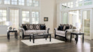If darker woods and a starker contrast is your thing, then look no further! This stunning traditional design pairs a soft light brown chenille fabric with black finished frames for an aesthetic that is hard to forget. Faux wood details cover the curved frames from the cabriole legs up to the rolled arms, while the loose back pillows offer every person who sits on it a plush retreat. The classic pillow patterns add more dark tones and an air of mystery to the ensemble.