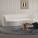 Compact fitted kidney-shaped single cushion, curved arms and backrest, and barely-there wooden legs contribute to this piece's tight fit and ultra comfort. Besides the intriguing shape, the other draw here is the visual impact it brings to any modern space. The boucle fabric features metallic undertones which when paired with a neutral color palette under certain lighting conditions, allow the texture to glitter and shine in the most undeniably chic way.
