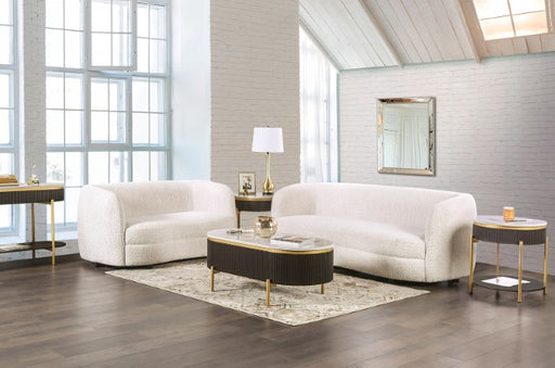 FurnitureOfAmericaConceived in part to be cost-efficient, this set enjoys a smaller scale that is elevated by grand styles. The ivory-colored sofa serves as the cent...