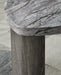 Details Made with decorative laminates and MDF substrate, Tabletop with gray faux marble, Legs with replicated weathered gray wood grain