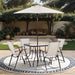 | Dimensions | Table: 30"W X 30"D X 29"H, Chair: 19"W X 26.5"D X 35.5"H, Umbrella: 76"W X 76"D X 86"H | |