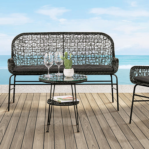 Enjoy the great outdoors in style and comfort with this UV and weather resistant patio set. Featuring a woven look, the wicker frame is finished in...