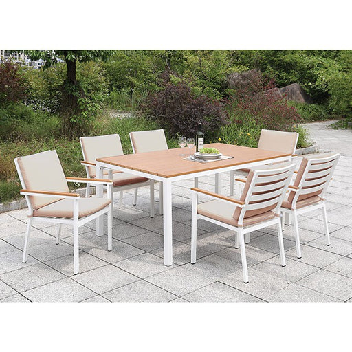 FurnitureOfAmericaHost a quaint dinner party outside with this charming outdoor dining set. The lengthy table top features a beautiful reinforced top with elegant mo...