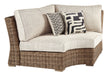 Sporting an easy-on-the-eyes look inspired by driftwood, this curved corner chair with cushion elevates the art of alfresco living. Beautiful and durable enough for indoor and outdoor use, the high-style/low-maintenance seating entices with plush, removable cushions wrapped in Nuvella® fabric that’s a breeze to keep clean.