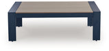 Easy-breezy beauty, made to withstand the elements. The Mabry Shores outdoor coffee table makes a serene statement with its soothing shade of blue and contrasting wood-look top. Crafted with durable materials for added longevity, it's a smartly stylish addition to your outdoor oasis.