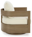 | Details | Rust-resistant aluminum frame with durable powder coated finish, Powder coated aluminum resists rusting and fading, Wood-look finish, All-weather foam cushion core wrapped in soft polyester, Zippered cushions and throw pillows covered in solution-dyed high-performance fabric, Nuvella+ is an outdoor fabric that can be cleaned and offers enhanced UV resistance, Clean fabric with mild soap and water, let air dry; for stubborn stains, use a solution of 4 oz. bleach to 28 oz. water, Stainless steel hardware, Designed to withstand the harsh elements of the outdoors, 360-degree swivel and gentle gliding motion, Assembly required | |