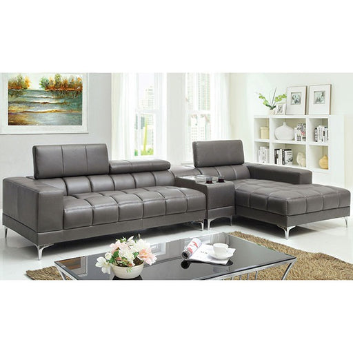 FurnitureOfAmericaThis optional center console with bluetooth speakers can allow you to play all of your favorite music wirelessly in your living room. Gray bonded l...