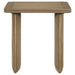 Grounded in architectural simplicity, this square end table showcases sculptural reeding and smooth curvature in a compact, functional form. The softly rounded square top rests over a dual curved pedestal base adorned with vertical reeded detailing, all finished in a warm distressed light brown. Crafted from engineered wood and ash veneer, this side table merges texture, rhythm, and utility as a refined accent for living rooms or bedrooms.