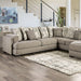 A salt and pepper tough knit fabric graces the upholstery of this gloriously roomy sectional. One arm end and a center section make up this extremely accomodating and comfortable set of lounging furniture. A must-have for those with a large family or many friends.