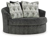 Bring fashionable function to the forefront with this oversized swivel accent chair. The transitional design gets a dash of flair with a 360-degree swivel motion. Dress it up or down. In a richly versatile neutral, this chair appeals to a variety of style personalities.