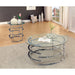 Make jaws drop with this beautifully designed accent collection. The round tempered glass tops allow the spiraling chrome base structures to shine brilliantly while the open, tiered look takes you to a serene getaway.