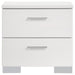 Modern design meets ambient lighting in this contemporary bedroom set. The bed features a white high gloss headboard with built-in blue LED lighting, activated by a convenient touch switch. A faux leather upholstered bed frame adds a refined touch, while matching storage elements offer smooth metal glides and chrome-finished details. With clean lines and integrated lighting, this set adds both functionality and visual impact to any modern bedroom.
