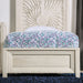 This collection is a definite showstopper. An etched wooden sunburst pattern serves as the focus, grabbing everyone's attention to the tall and imposing headboard. The same elaborate design is found on the night stand and dresser panels with cleverly hidden finger pulls. What keeps the flamboyant centerpiece in check is the rather subdued ivory color, hand-painted and hand-finished to bring out the beauty of the solid Brazilian pine wood. The result is a bedroom set that's nothing short of exotic.
