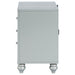 Bring modern glam to a classic design with this transitional two-drawer nightstand. It features a glitzy design that draws the eye in any modern home. It's crafted with a vibrant silver metallic finish with fret work detail on the front panels and drawer fronts. The drawers are adorned with crystal-like pulls and the top one is lined with black felt. Dual USB ports and delicate bun feet complete the design of this exquisite accent piece.