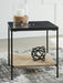 Details Made with engineered wood and metal, Metal base with black finish, Black marble tabletop, Color variations, fissures, mineral deposits and veining in the marble are naturally formed characteristics, Bottom shelf woven from natural jute cord, Assembly required