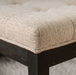 The sophisticated fabric-upholstered bench create a comfy yet luxurious atmosphere.