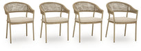 Whether decking out your deck or patio or making a splash by the pool, this outdoor arm chair with cushion is all about easy-breezy outdoor living. Its gently curved back features a nicely neutral polyester rope wrap over a sturdy, rust-resistant aluminum frame that’s sure to weather the seasons beautifully. The cushion is covered in high-performance Nuvella® fabric that withstands the elements and is oh-so-easy to clean.
