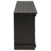 • Roughhewn wood markings add artisan character to a modern farmhouse TV stand