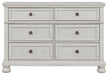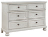 Elegant, timeless furnishings take your bedroom to the next level. Nothing does that better than this dresser. The antiqued white finish with a wonderful grain texture radiates sophistication, while dark bronze-tone knobs add an ornate touch. Felt finishing in the upper drawers rounds out this tasteful piece.