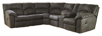 With plush cushions and wraparound pillow top arms, this sectional takes comfort to a whole new level. Faux vintage leather requires minimal care, making this relaxation station ideal in homes with children and pets. Reclining feature engages with the pull of a tab, putting pleasure at your fingertips.