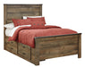 Whether she loves horses or he's a cowboy at heart, this twin panel bed with under bed storage matches their authenticity. Its rustic finish, plank-style details and nailhead trim pay homage to reclaimed barn wood, making for a chic look loaded with charm. Mattress available, sold separately.