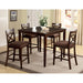 Update a small dining area with this modern counter height table and matching padded microfiber chairs. The table has simple square lines and the chair backs have a bold geometric design. Finished in espresso.